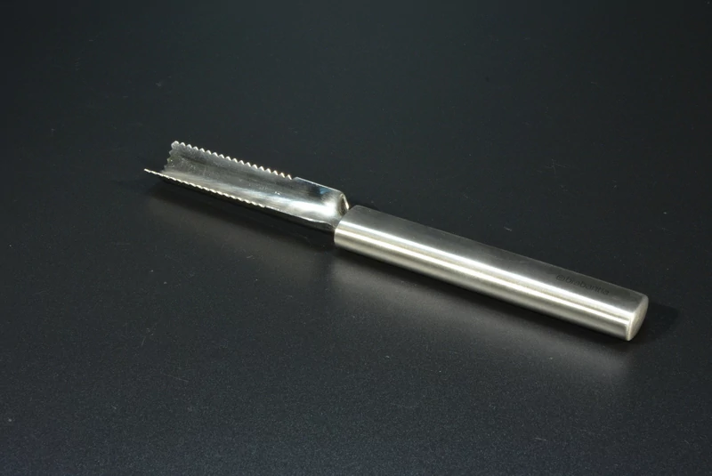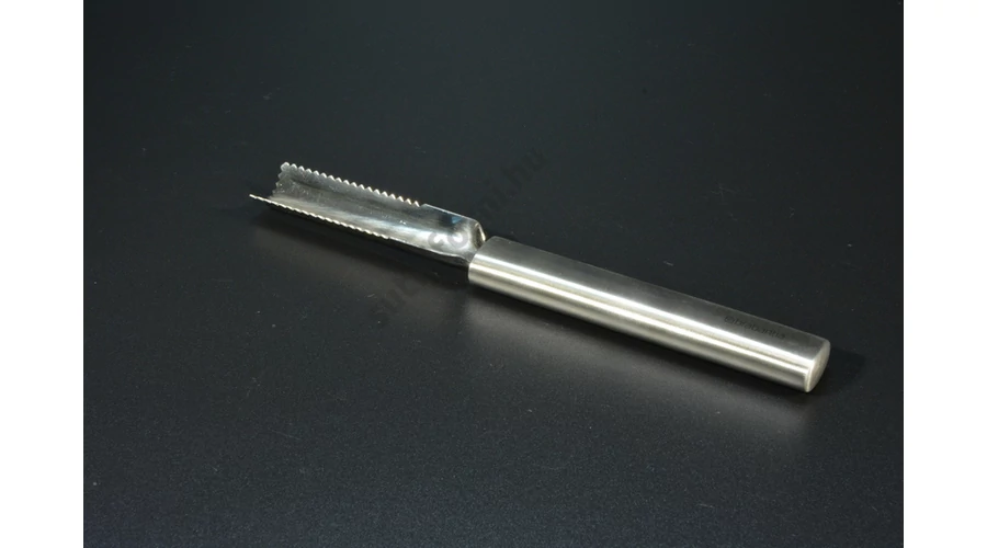 A masszív, rozsdamentes acél fej precíz élekkel dolgozik, a fogása kényelmes és stabil. A fogazott szél precízen hatol az alma húsába, a hengeres penge pedig tisztán kiemeli a magházat – nem roncsolja a gyümölcsöt. Mosogatógépben tisztítható, hosszú távon is megőrzi épségét.